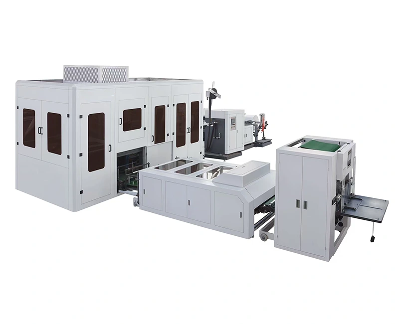 3. Завршава процесе као што су израда дршке, сечење, тродимензионално обликовање и сабијање у једном потезу. Он заиста решава проблеме високе цене и ниске ефикасности повезане са ручним нетканим врећама типа кутије.